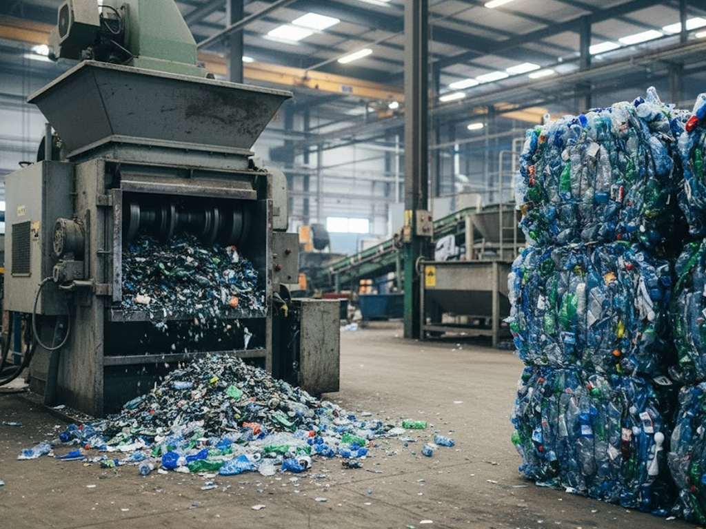 Plastics are fed into shredders and ground into small flakes to facilitate cleaning and melting. Flake size is typically kept consistent to ensure stable quality in the later extrusion and pelletizing stage.