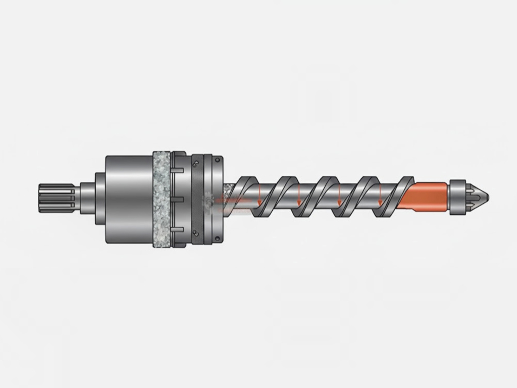 Trục vít máy ép nhựa có thiết kế xoắn giúp nén và đẩy nhựa nóng chảy trong quá trình ép phun